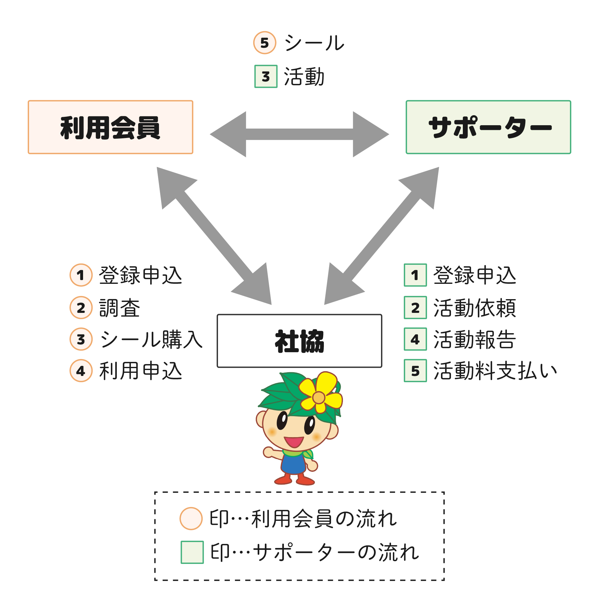 住民が参加して、住み慣れた地域でサポートを必要とする人に、日常生活のお手伝いを住民が主体となって実施する会員制の「住民参加型在宅福祉事業」です。